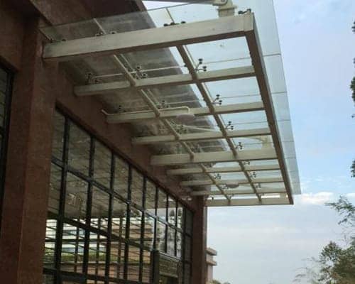 玻璃雨棚介紹玻璃雨棚是以鋼結(jié)構(gòu)框架為主要結(jié)構(gòu),選用優(yōu)質(zhì)Q235材質(zhì)的系列鋼管,包括鋼柱、鋼主梁次梁等。