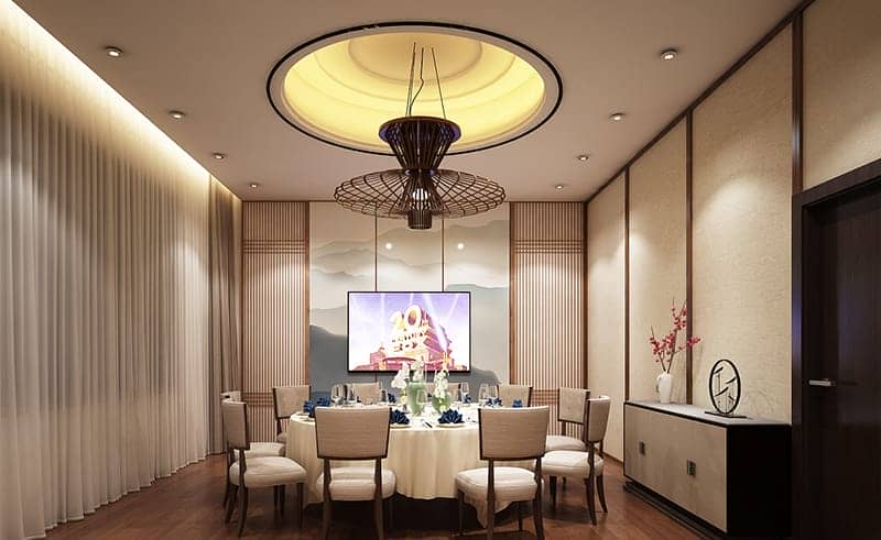 設(shè)計方案響應(yīng)業(yè)主訴求,以中式意味為主要方向,擯棄中式元素堆砌,以配色、造型求得所想。