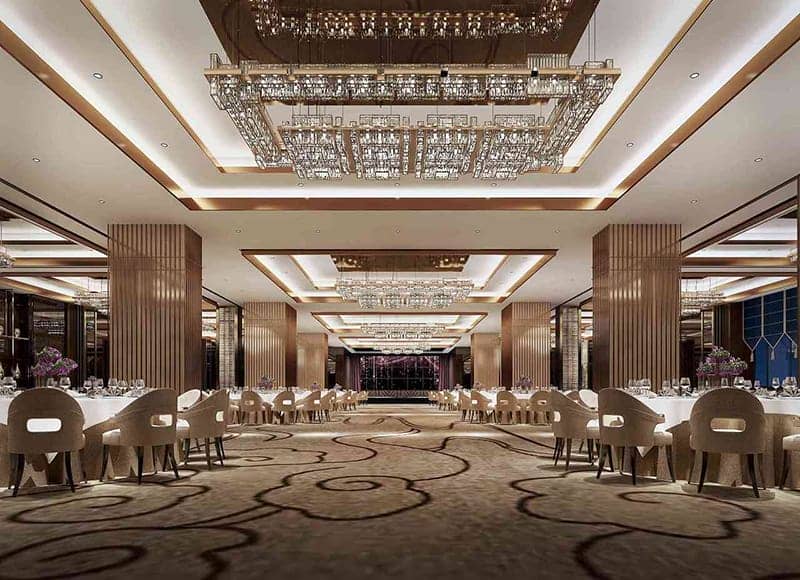 宴會廳燈光裝飾設(shè)計(jì):由于宴會廳是一個大型聚會場所,通常配有舞臺,所以相應(yīng)的燈光裝飾設(shè)計(jì)比較復(fù)雜。對于舞臺區(qū)域,可以設(shè)置舞臺搖頭燈,LED RAR燈和追光燈。一般照度為105-750。照明方法應(yīng)體現(xiàn)多樣性,并適應(yīng)調(diào)光器和分流開關(guān)以滿意不同功能的需求。大廳裝飾有裝飾燈,可以用天花板燈和壁燈裝飾。由于宴會廳的特別功能,補(bǔ)充僅限用餐,以及會議和慶典,因此經(jīng)過翻修的宴會廳的燈光可能會輕微更亮。一般來說,不同主題的宴會廳的裝修設(shè)計(jì)對氣氛有不同的要求。宴會廳氣氛中有許多裝修元素。這些裝修設(shè)計(jì)元素直接影響宴會廳對顧客的吸引力。