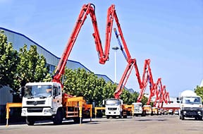 混凝土布料泵車的結(jié)構(gòu),它主要由專用汽車底盤、混凝土泵、攪拌器、隔篩、布料裝置、混凝土分配閥和支腿等。