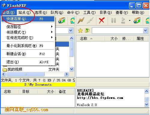 1.運(yùn)行 FlashFXP,點(diǎn)擊會話->快速連接