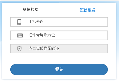 4.3依次填寫驗證信息(手機號碼、證件號碼后六位)并完成圖形驗證,點擊【提交】,即可實現(xiàn)手動重發(fā)