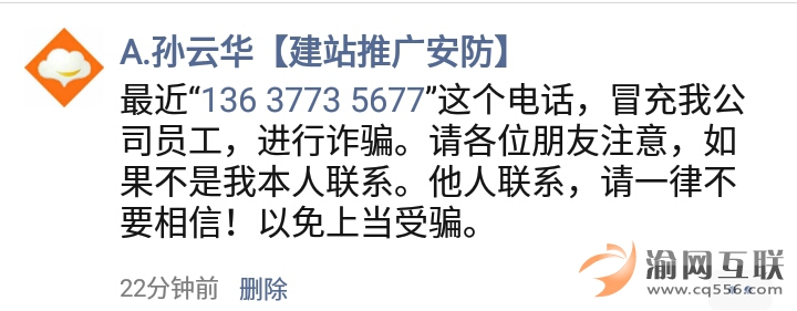 騙子“13637735677”,冒充我重慶公司員工,進行詐騙,請勿信!