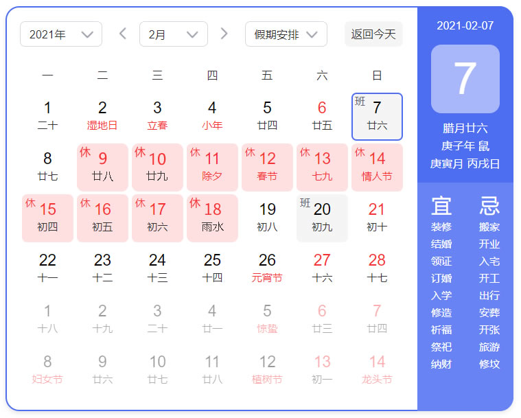 根據(jù)國家法定節(jié)假日安排,并結(jié)合本重慶公司情況,于2月9日——2月18日實施2021年春節(jié)休假,共10天,于2月19日(正月初八)恢復(fù)上班。休假期間,服務(wù)不斷電(023-65309616)!