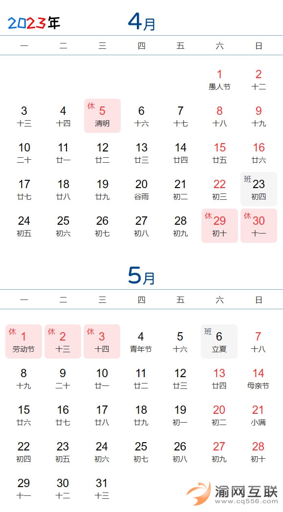 2023年五一勞動節(jié)放假時間:2023年5月1日(星期一)-2023年5月5日(星期五),共5天,2023年4月30日(周日)、2023年5月6日(周六)正常上班調休。