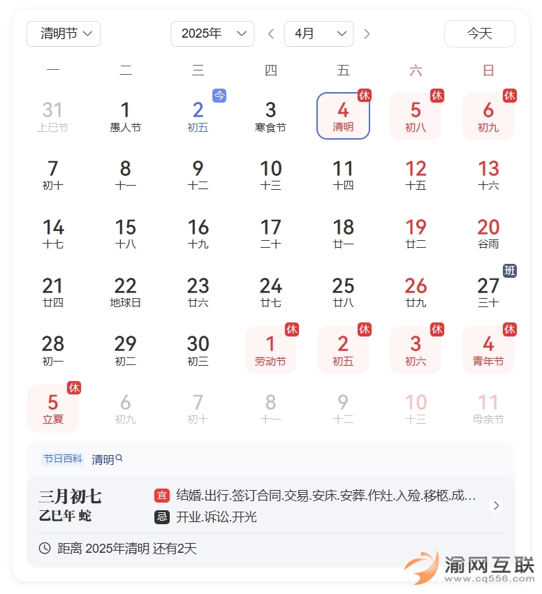 根據(jù)國(guó)務(wù)院辦公廳關(guān)于2025年部分節(jié)假日安排的通知:2025年4月4日(周五)至6日(周日)放假,共3天。