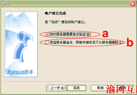 為了安全保密起見,建議您不要在服務(wù)器上備份您的郵件,請不要將b處前面的鉤打上。